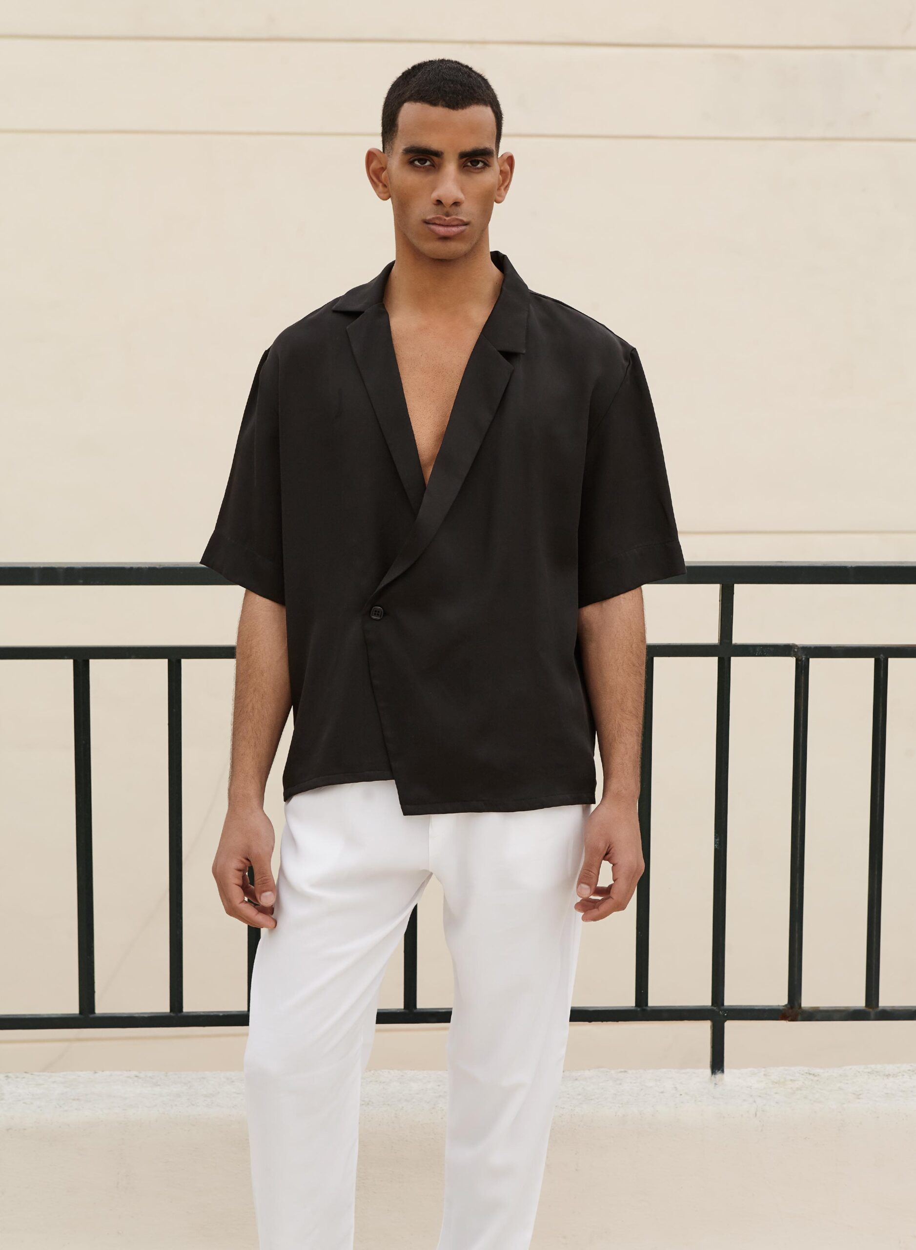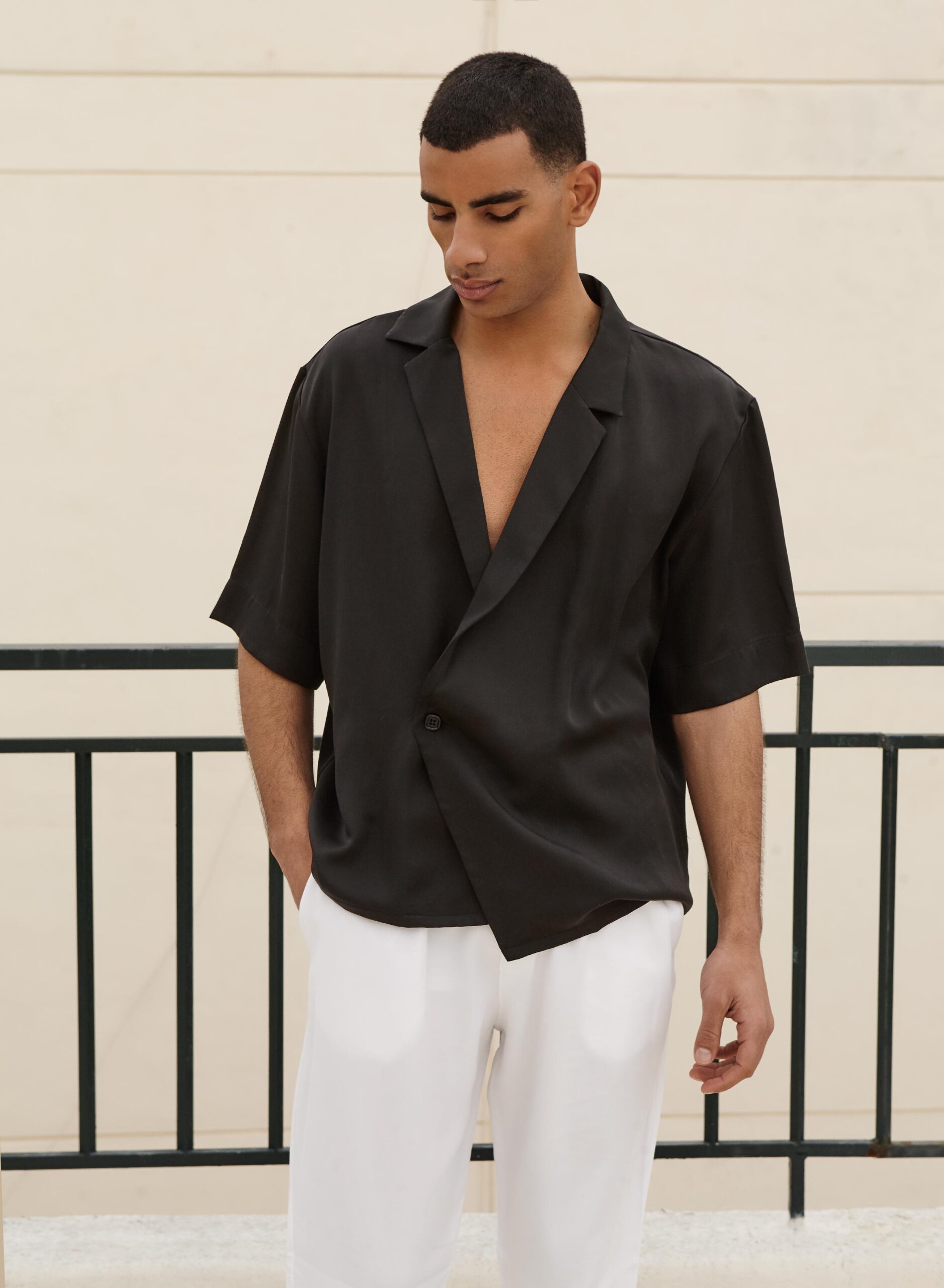 Named after the sacred island near Mykonos, the Delos Shirt is a study in quiet architecture. Cut from fluid cupro, it features a subtle asymmetrical closure that offsets its clean silhouette with unexpected precision.